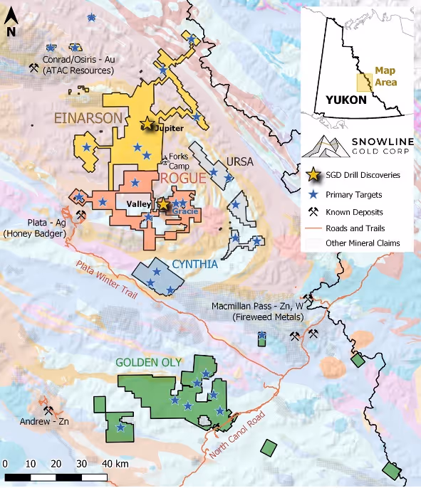 As part of the TSX-V listing requirements, Snowline will complete an updated NI 43-101 technical report on its Rogue project in the Yukon, Canada within 120 days of listing. The most recent technical report on the property (Effective date: December 10, 2020) was written prior to the creation of Snowline through a reverse takeover arrangement that secured ownership of Rogue and other Yukon properties. Since commencement of trading on the Canadian Securities Exchange as SGD on March 1, 2021, Snowline has significantly grown and advanced Rogue on the back of a major gold discovery, which will be detailed in the updated technical report. Later in this release, Snowline provides a summary of relevant activities completed to date.