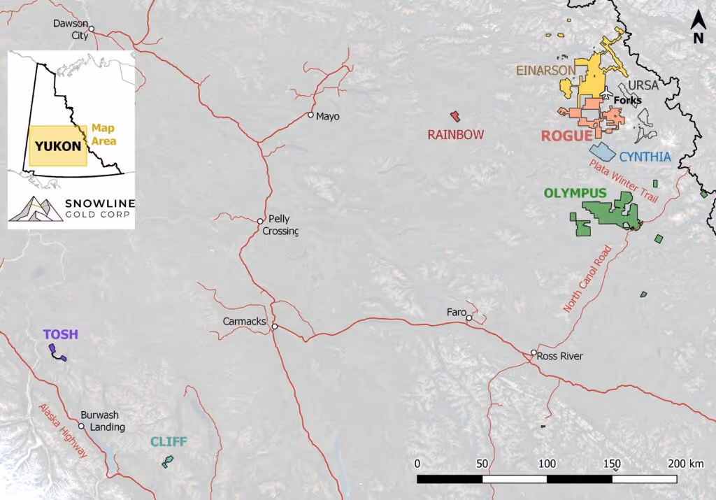 Vancouver, B.C., May 31, 2023: SNOWLINE GOLD CORP. (TSX-V: SGD) (OTCQB: SNWGF) (the “Company” or “Snowline”) is pleased to announce that it has commenced its 2023 exploration and drilling program. Drill crews and geological staff recently mobilized to the Company’s 50-person Forks Camp, which supports its Rogue, Einarson, Ursa and Cynthia projects. Phase III diamond drilling is underway at the Valley Zone on Snowline’s flagship Rogue Project to expand and advance the target towards an initial mineral resource estimate. Additional drilling and extensive surface work is planned across the Rogue Project and Snowline’s broader project portfolio.