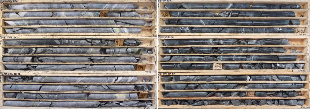 • Hole V-21-002 averaged 1.01 g/t Au over 136.75 m from 35.25 m downhole, within a broader mineralized zone averaging 0.85 g/t Au over 186 m.