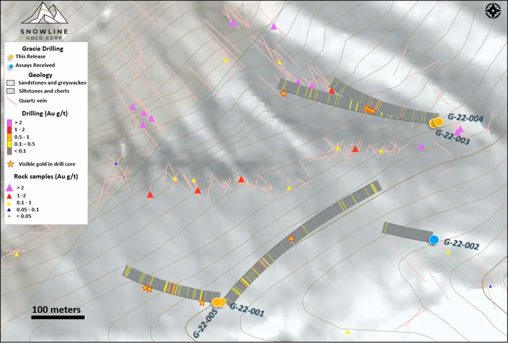 “Today’s results continue to highlight and build on the prospectivity of our Rogue Project,” said Scott Berdahl, CEO & Director of Snowline. “A single season of drilling has transformed our Valley Zone from an interesting exploration target to a pre-resource gold project noteworthy on a global scale, redefining the deposit model far beyond what are traditionally low grade, heap-leach systems. The consistency of strong grades and the size of Valley make it easy to understand, translating to lower exploration costs required for delineation, and in the future, lower costs for any potential economic operation. Our results from Gracie demonstrate that Valley is not a one-off—Snowline’s Rogue Project is prospective for multiple gold systems of this scale and intensity. We are excited to resume exploration in 2023 with the dual goals of further advancing Valley and locating additional gold systems just like it.”