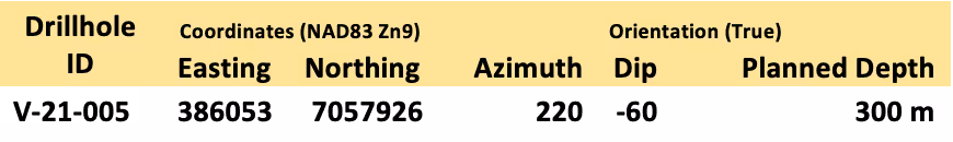 Table 1 – Location and orientation of V-22-005, currently underway at Valley. Project staff may change the planned depth depending on results and other factors.